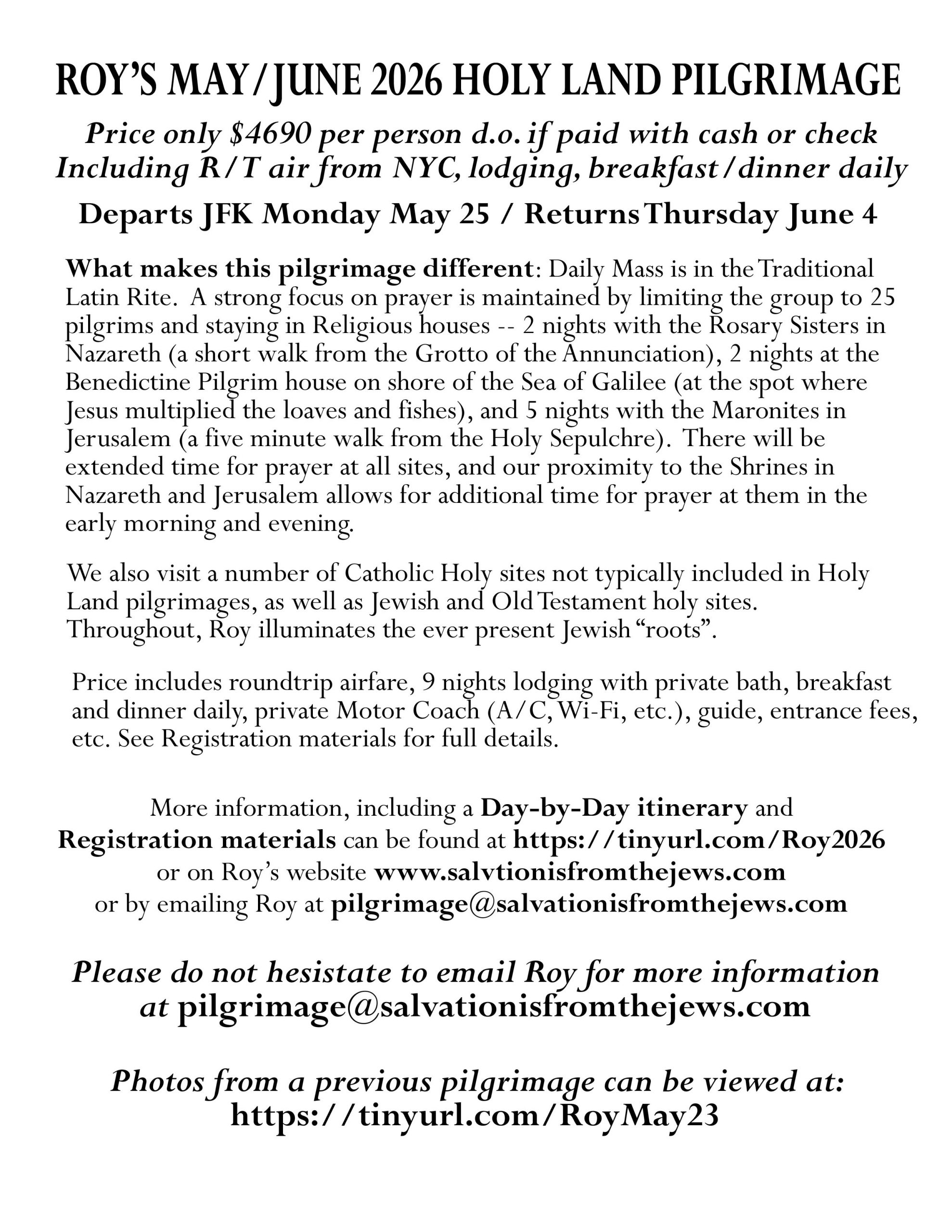 Registration Now Open for May/June 2026 Holy Land Pilgrimage with Roy